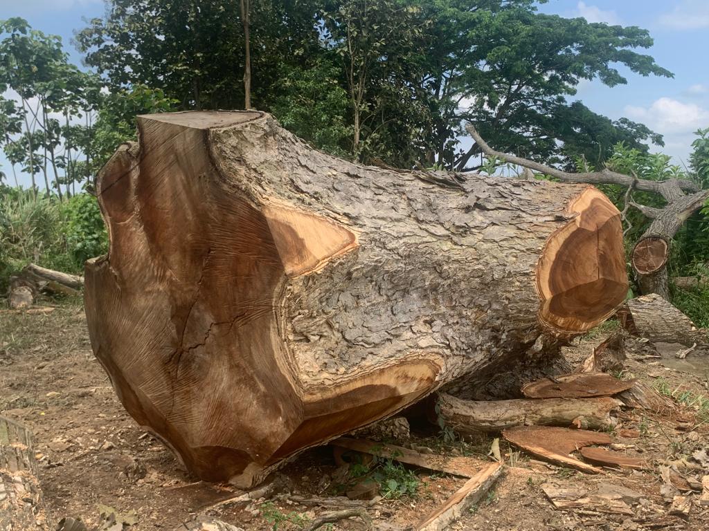 弊社工場にてモンキーポッドのテーブル天板の最終仕上げを行っています。材料を天然乾燥した後、人工乾燥機に投入し、適切な含水率まで水分を抜きます。その後、高周波プレスをかけ